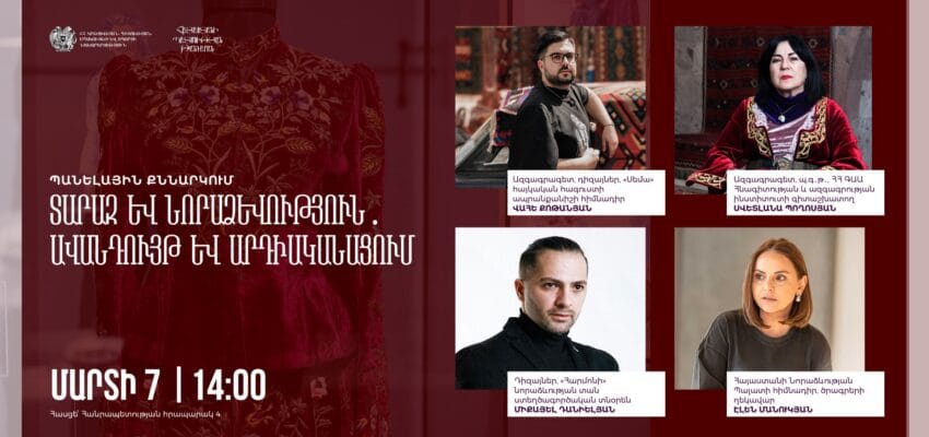 Կանանց միջազգային օրվան՝ Մարտի 8-ին ընդառաջ, մարտի 7-ին՝ ժամը 14։00-ին, Հայաստանի պատմության թանգարանը հրավիրում է պանելային քննարկման՝ միասին բացահայտելու հայ կնոջ հագուստի պատմությունն ու դրա փոխակերպումները ժամանակի ընթացքում։