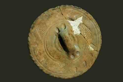 Մակերեսին դրոշմված են ցանցազարդ եռանկյունիներ: Կենտրոնում տեղադրված է աղեղնաձև բռնակը: Սկավառակը եզերված է մատնեքենավոր գոտիով: Ծեփած է ձեռքով։ Այսպիսի խփերն օգտագործվել են թոնիրները, կարասները և սնունդ կամ հեղուկ պարունակող այլ անոթները ծածկելու համար: Հավաքածու : Հնագիտական հավաքածու Դ [...]