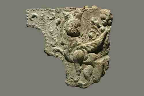 Խաչքարի քանդակազարդ քիվի հատված: Հորինվածքի սյուժեն ամենայն հավանականությամբ աստվածահայտնությունն է ըստ Եզեկիել մարգարեի: Կենտրոնում Հիսուս Քրիստոսի դիմահայաց պատկերն է` աջը խաչակնքելու ժեստով վեր պարզած: Կողքին թռչնի պատկեր է: Հավաքածու : Հնագիտական հավաքածու Դարաշրջան ։ 14-րդ դ․ Տարածա [...]