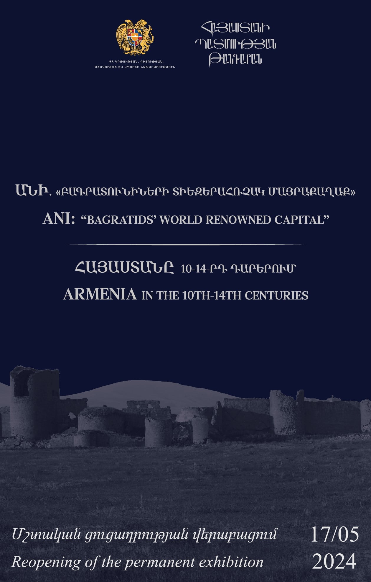 Within the framework of the “Museum Nights” pan-European event, on May 18, at 11:00, the History Museum of Armenia will reopen permanent exhibition halls Ani: “Bagratids’ World Renowned Capital” and “Armenia in the 10-14th centuries”. The exhibition will feature about 350 objects from An [...]