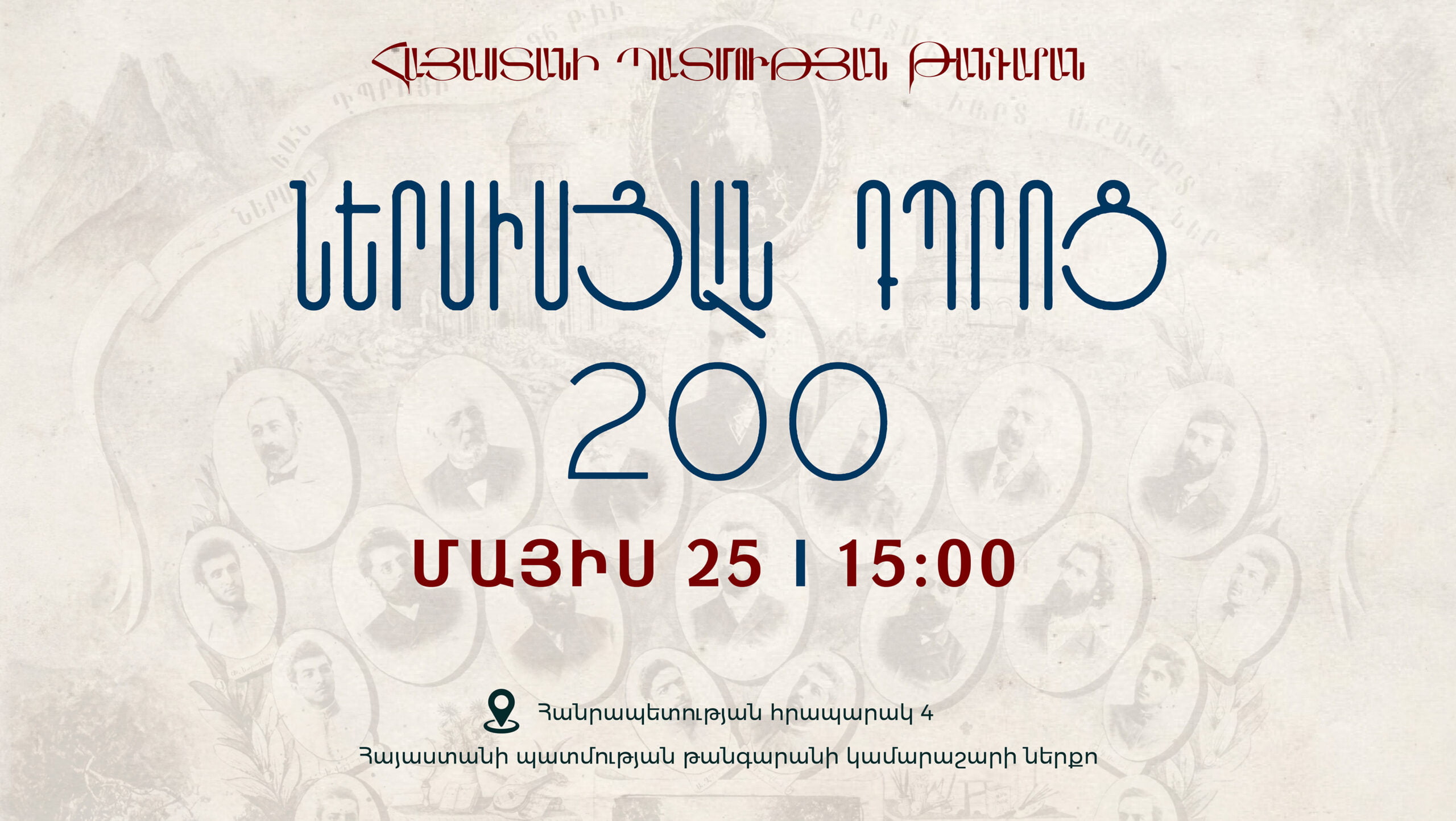 On the 25th of May at 15.00, the opening ceremony for the exhibition of posters “Nersisian School in Tiflis - 200” will take place under the arches of the History Museum of Armenia. After the opening ceremony, public figure, Levon Chidilian, will present his lecture about the history and [...]