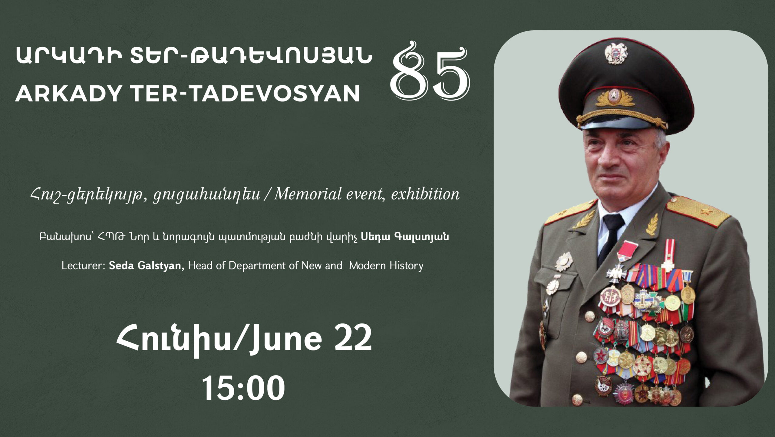 On 22 June at 15:00, the History Museum of Armenia will host a memorial matinee and the opening of the exhibition dedicated to the 85th anniversary of the birth of Arkady Ter-Tadevosyan (Komandos), a military figure of the Armenian people, Major General of the Armenian Armed Forces, Nati [...]