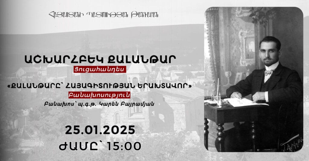 On 25 January at 15:00, as part of the events dedicated to the 140th anniversary of the archaeologist and participant in the Ani excavations Ashkharbek Kalantar, the opening ceremony of the temporary exhibition “Ashkharbek Kalantar” will be held at the History Museum of Armenia, followed by a lecture entitled “Kalantar, the Revered Figure of Armenian […]