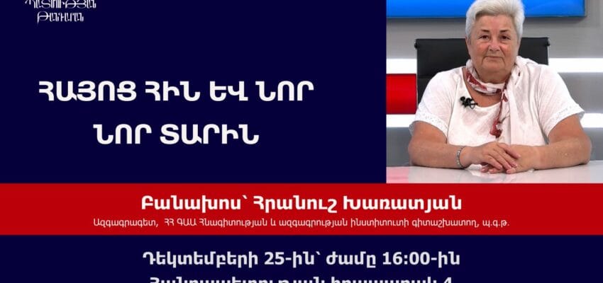 В канун Нового года, 25 декабря, в 16:00 в Музее истории Армении состоится лекция на тему «Старый и новый армянский Новый год», которую проведет этнограф, научный сотрудник Института археологии и этнографии НАН РА, доктор философии Грануш Харатян. Докладчик представит генеалогию Нового года, политическую и календарную мобильность, армянские ритуалы и особенности празднования.