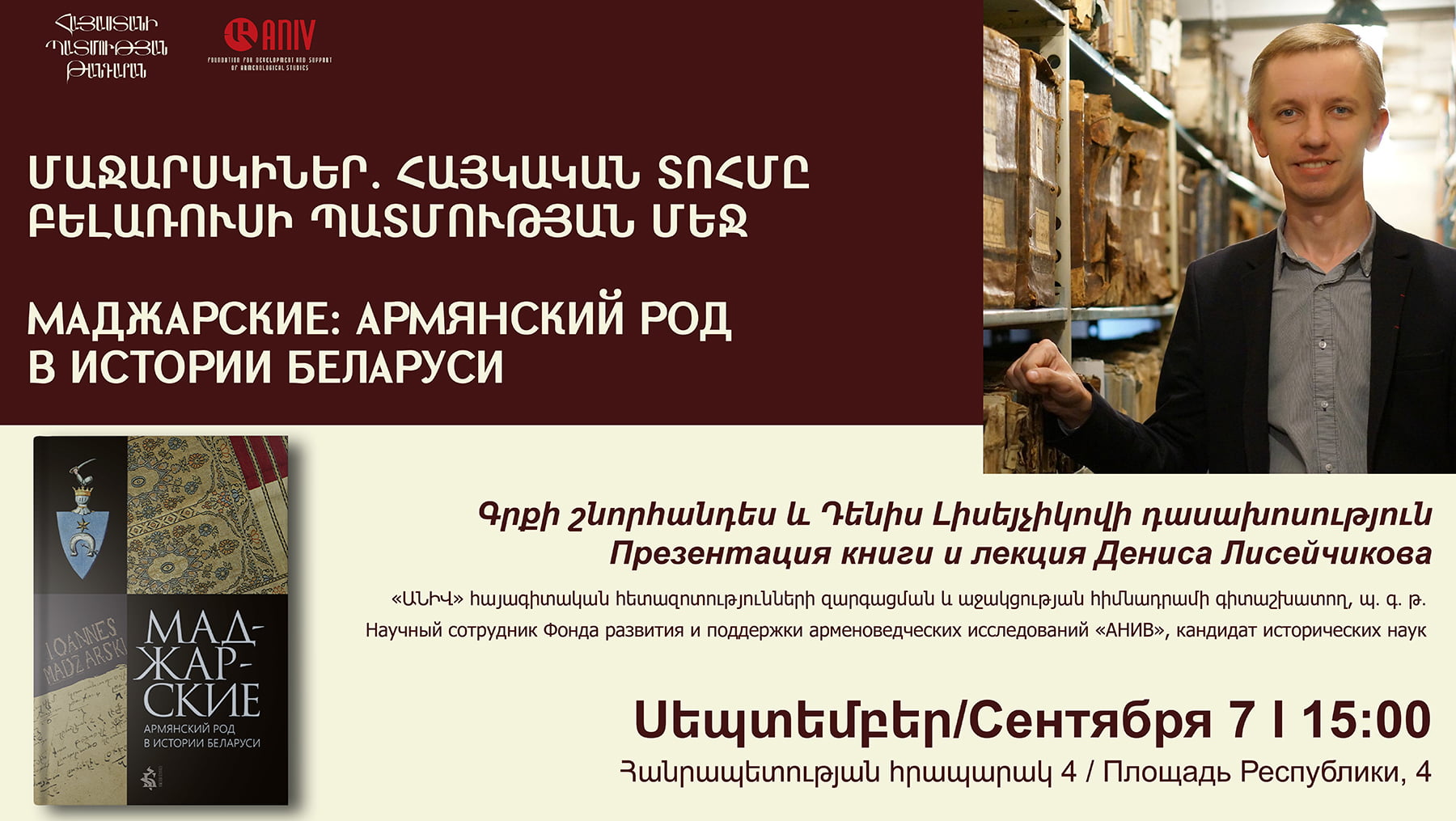 7 сентября в 15:00 в Музее истории Армении состоится лекция научного сотрудника Фонда развития и поддержки арменоведческих исследований «Анив», кандидата исторических наук Дениса Лисейчикова, на тему «Маджарские. армянская династия в истории Беларуси» и презентация одноименной книги. В [...]
